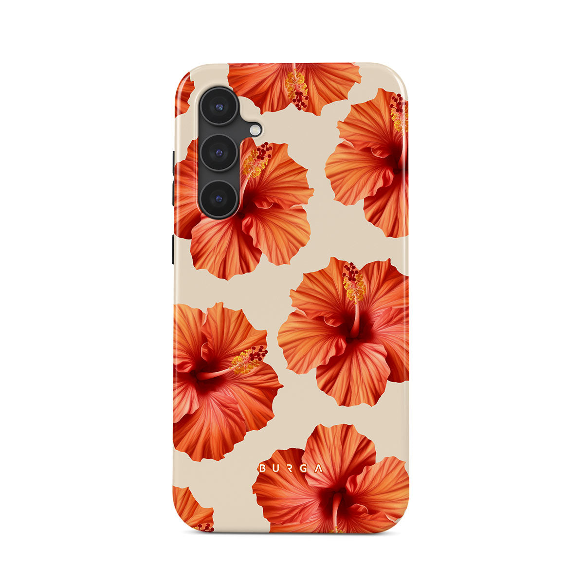 Transport yourself to a lush tropical escape with Bonita. Featuring bold, beautiful hibiscus blooms that pop against a creamy backdrop, this Samsung Galaxy S23 FE phone case design is perfect for those who dream of vibrant, floral beauty and exotic adventures.