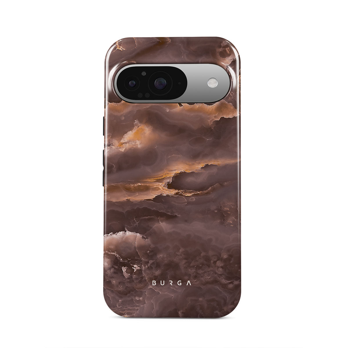 The bonfire starts to flicker – it's time to gather more wood. With a brown marble Google Pixel 9 phone case design inspired by a bonfire flame, carry a feeling of content and excitement wherever you go. The protective case is needed in a hike, but a stylish accessory will match your aesthetic even on a lazy Sunday.