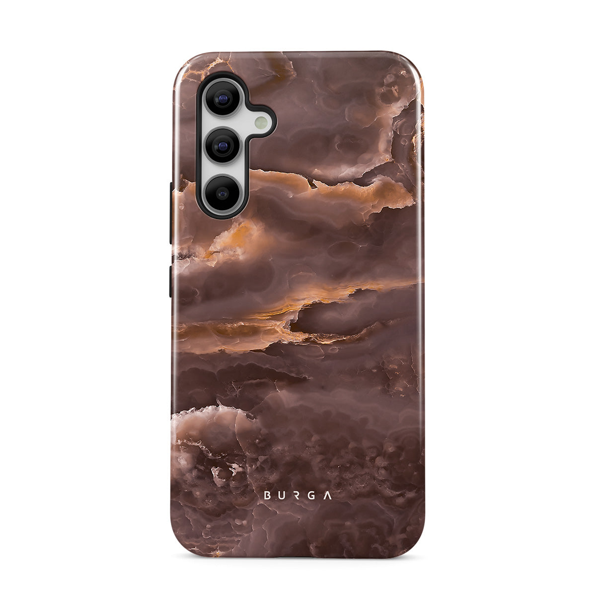 The bonfire starts to flicker – it's time to gather more wood. With a brown marble Samsung Galaxy A55 phone case design inspired by a bonfire flame, carry a feeling of content and excitement wherever you go. The protective case is needed in a hike, but a stylish accessory will match your aesthetic even on a lazy Sunday.