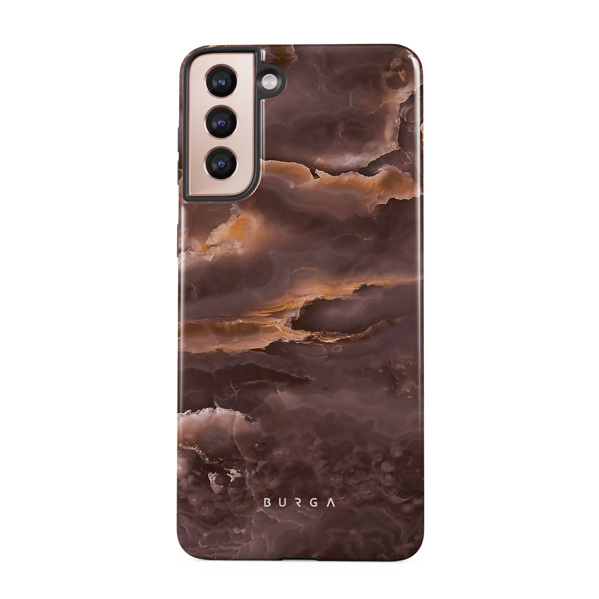 The bonfire starts to flicker – it's time to gather more wood. With a brown marble Samsung Galaxy S21 Plus phone case design inspired by a bonfire flame, carry a feeling of content and excitement wherever you go. The protective case is needed in a hike, but a stylish accessory will match your aesthetic even on a lazy Sunday.