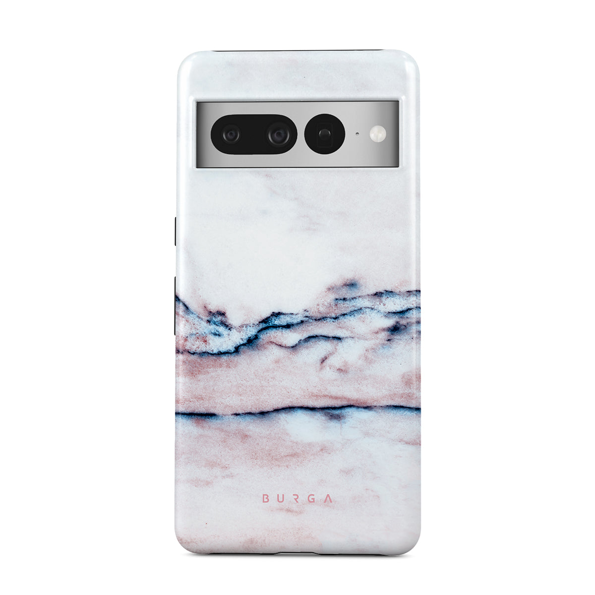 A pastel phone case is a must in every collection, and our soft Bubble Gum Google Pixel 7 Pro phone case is the one. The minimalistic design features a pink gradient with deep blue swirls in a marble pattern. Such a hard-shell case will provide heavy-duty protection while adding a touch of pastel to your collection