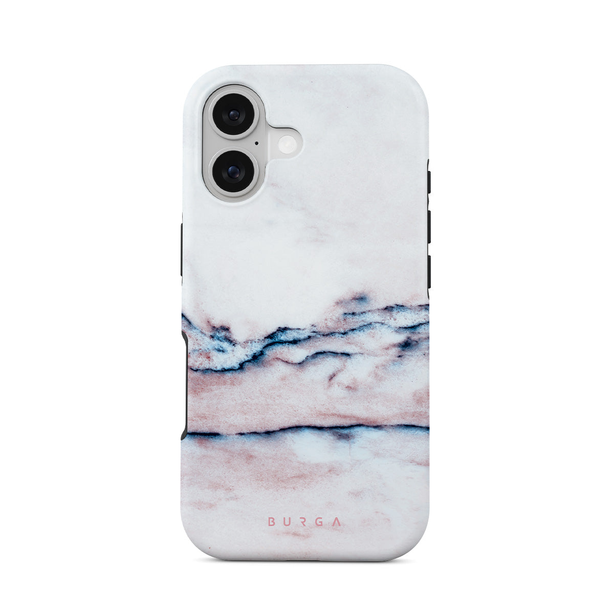 A pastel phone case is a must in every collection, and our soft Bubble Gum iPhone 17 phone case is the one. The minimalistic design features a pink gradient with deep blue swirls in a marble pattern. Such a hard-shell case will provide heavy-duty protection while adding a touch of pastel to your collection
