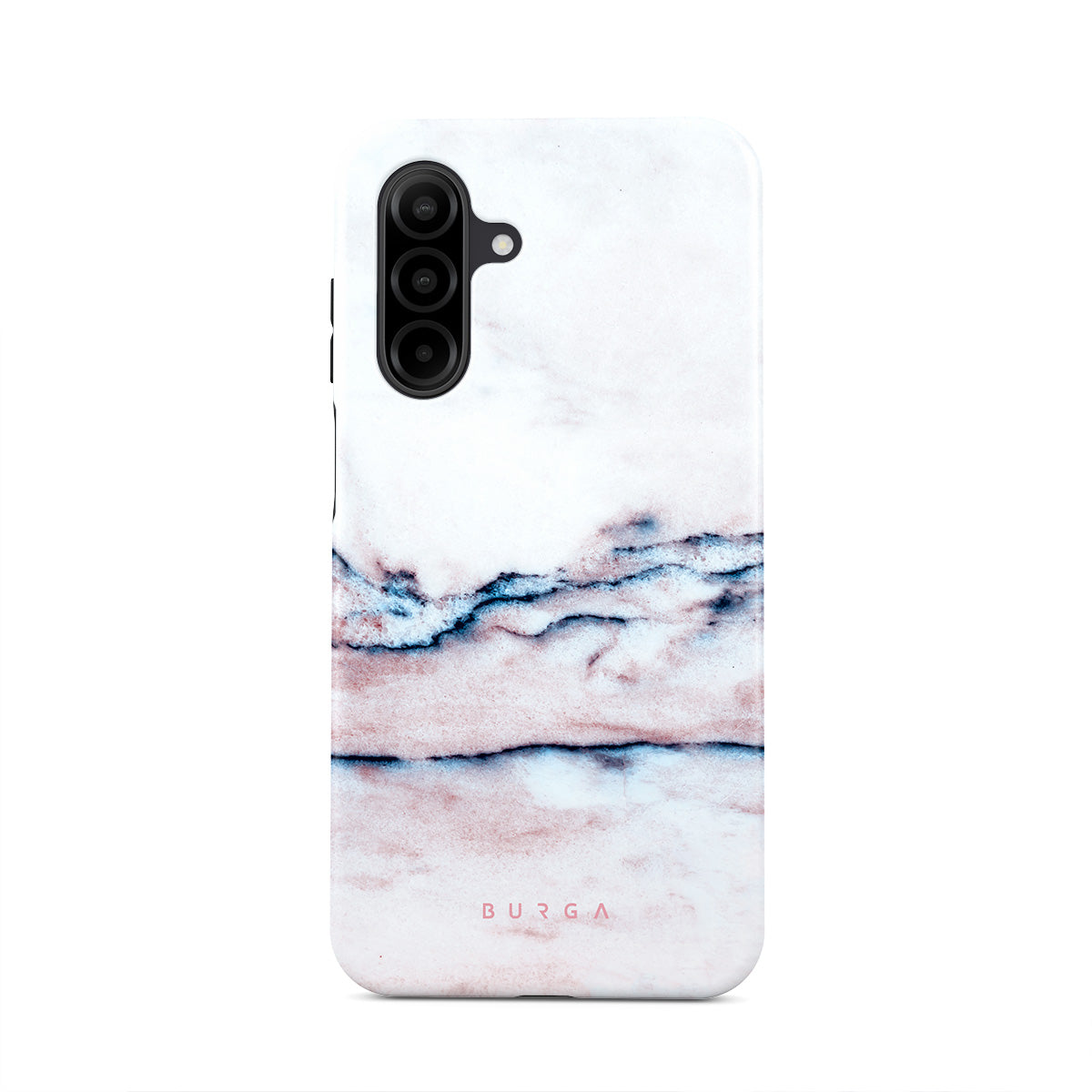 A pastel phone case is a must in every collection, and our soft Bubble Gum Samsung Galaxy A26 5G phone case is the one. The minimalistic design features a pink gradient with deep blue swirls in a marble pattern. Such a hard-shell case will provide heavy-duty protection while adding a touch of pastel to your collection