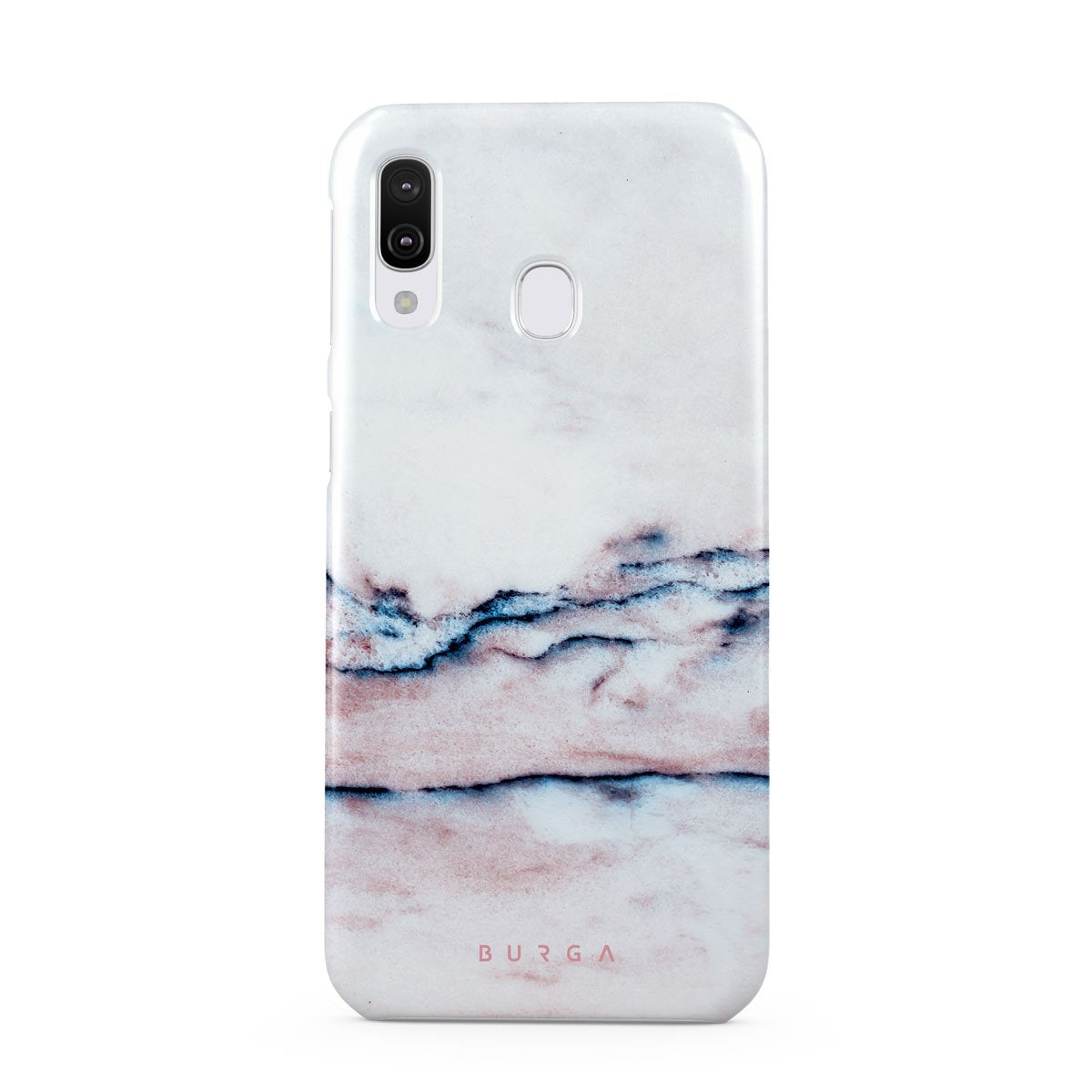 A pastel phone case is a must in every collection, and our soft Bubble Gum Samsung Galaxy A40 phone case is the one. The minimalistic design features a pink gradient with deep blue swirls in a marble pattern. Such a hard-shell case will provide heavy-duty protection while adding a touch of pastel to your collection