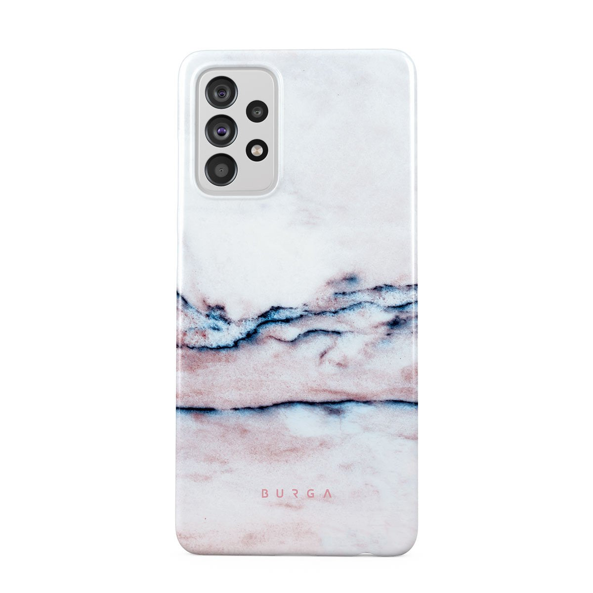 A pastel phone case is a must in every collection, and our soft Bubble Gum Samsung Galaxy A72 phone case is the one. The minimalistic design features a pink gradient with deep blue swirls in a marble pattern. Such a hard-shell case will provide heavy-duty protection while adding a touch of pastel to your collection
