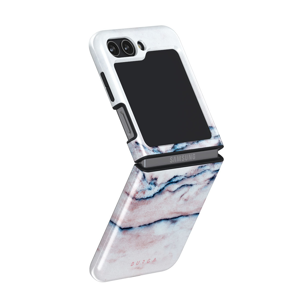 A pastel phone case is a must in every collection, and our soft Bubble Gum Samsung Galaxy Z Flip 5 phone case is the one. The minimalistic design features a pink gradient with deep blue swirls in a marble pattern. Such a hard-shell case will provide heavy-duty protection while adding a touch of pastel to your collection