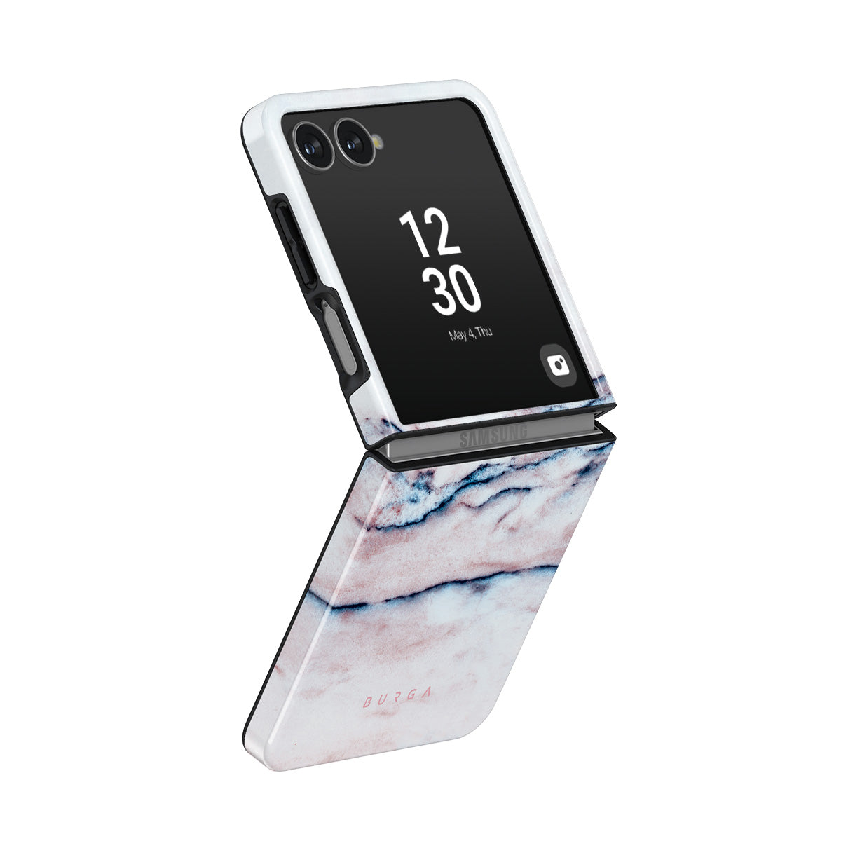 A pastel phone case is a must in every collection, and our soft Bubble Gum Samsung Galaxy Z Flip 7 phone case is the one. The minimalistic design features a pink gradient with deep blue swirls in a marble pattern. Such a hard-shell case will provide heavy-duty protection while adding a touch of pastel to your collection