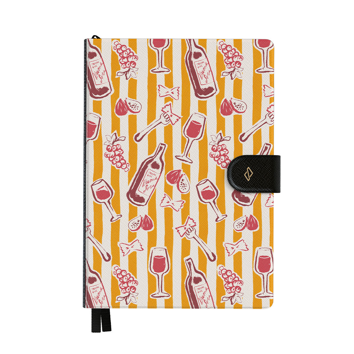 Wrapped in sleek vegan saffiano leather and secured with a sleek magnetic clasp, it's durable enough to handle coffee spills and life's little oops moments.