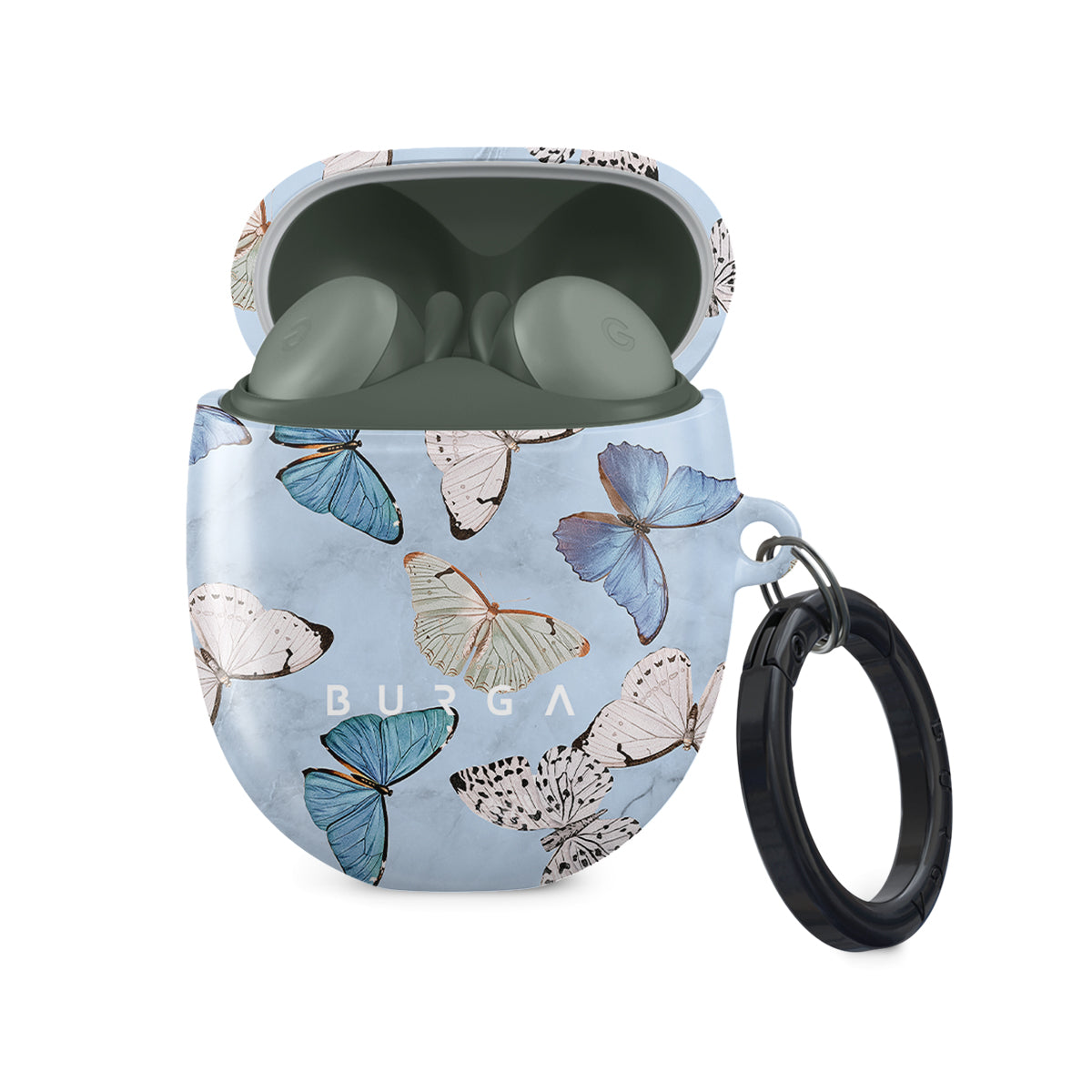 Add playfulness to your accessory game with our butterflies inspired Give Me Butterflies Google Pixel Buds Acase cover. Keep your precious case safe in a pastel blue cover—no need to choose safety or fashion. Our case fits perfectly snug around Google Pixel Buds A . “Like a glove!” one might say. And it won’t disrupt the wireless charging capabilities of the newer model. There’s even an LED light indicator to prove it (don’t worry, wired charging still works, too). When fitted, the BURGA case will protect the delicate Google Pixel Buds A case beneath it from scratches, bumps, and drops while remaining scratch-free itself. Our signature design pattern prints are High Quality, and will never peel or fade away- thanks to our unique printing technology. And finally, a handy carabiner is there to make your life easier and more convenient: just snap it around your keys or belt loop and tackle the day head-on. Your music is right there by your side when you need it.