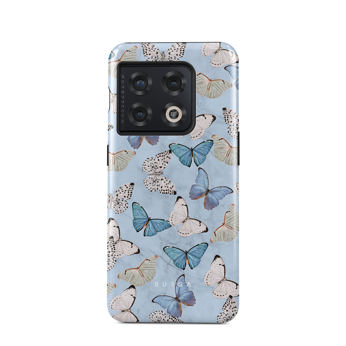 Pastel blue and a playful pattern of summery butterflies create a dreamy combination in our OnePlus 10 Pro 5G phone case. Carry the feeling of the butterflies in your stomach while protecting your phone from any dangers, as the hard-shell case will keep it sound and safe.