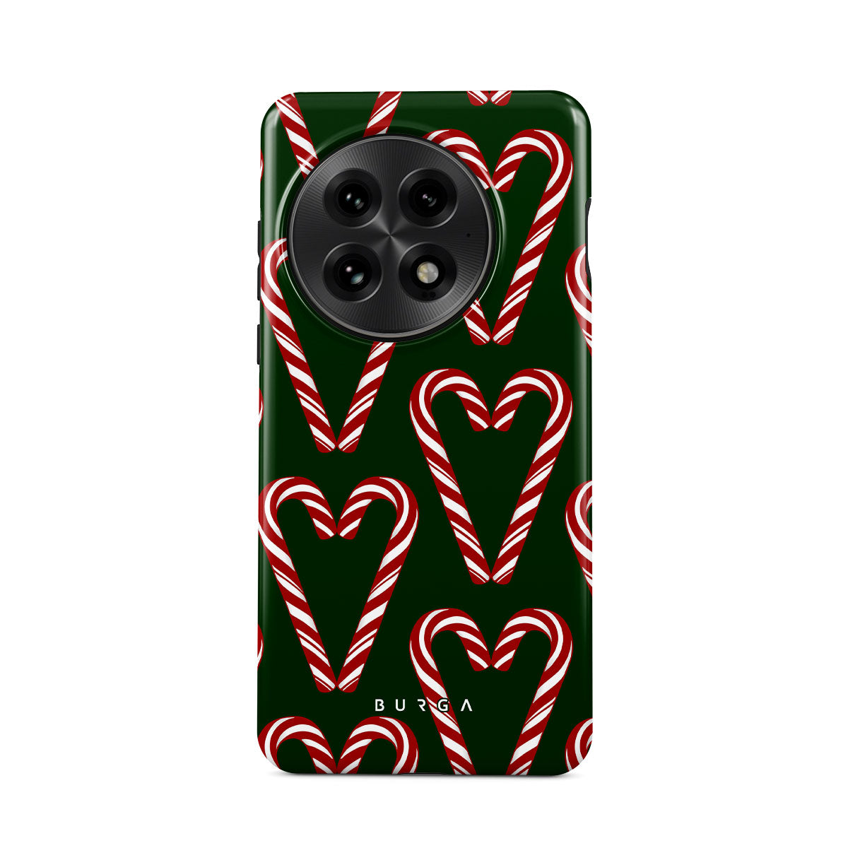 Vibrant and playful, our Candy Cane OnePlus 13 Case phone case design showcases candy cane heart motifs against a dark green background—a delightful choice for those who love a touch of whimsy and nostalgia.