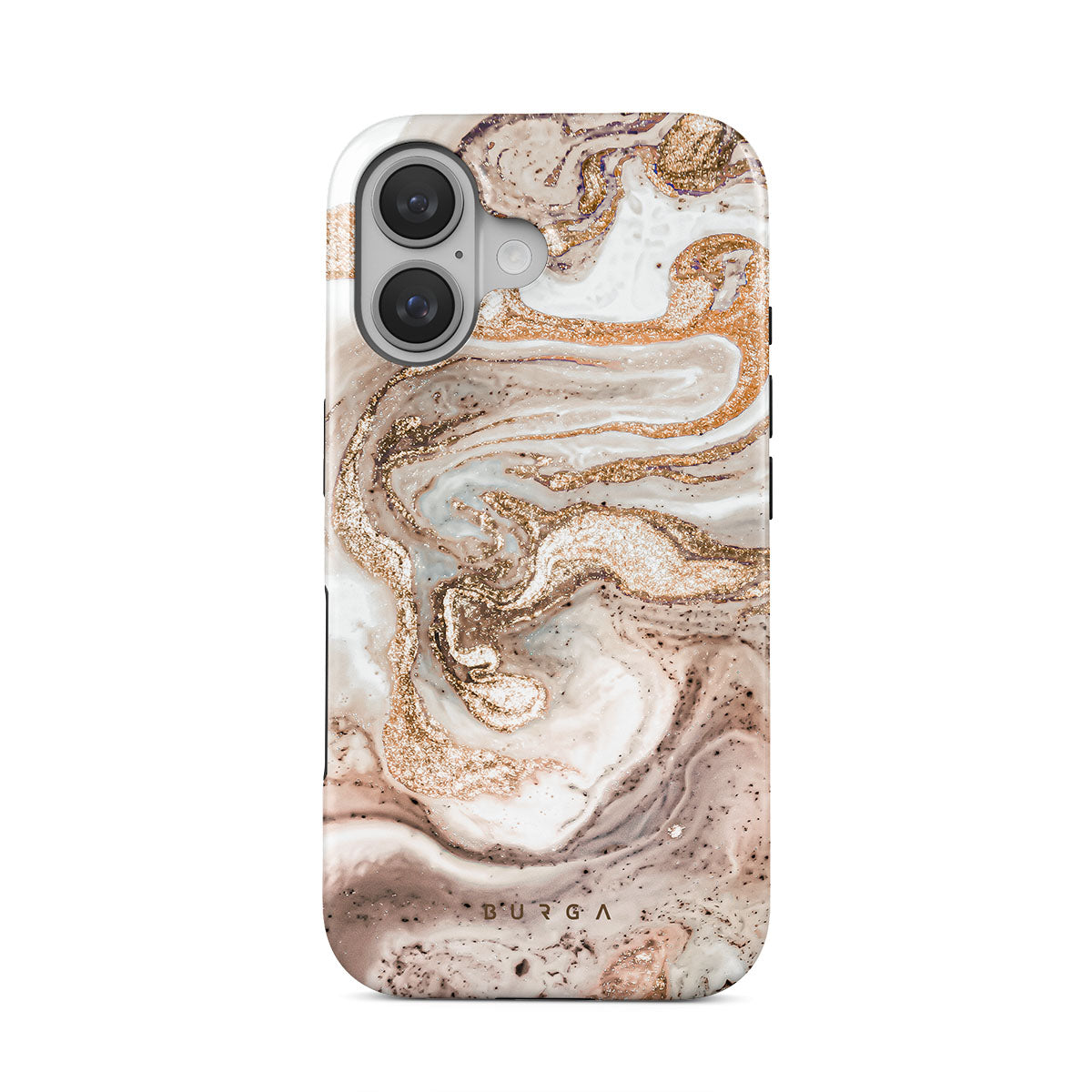 Our enchanting Cappuccino iPhone 16 Plus phone case showcases a sophisticated and creamy marble pattern with golden swirls in it. The marble dream radiates elegance and luxury and is guaranteed to add some to your style.