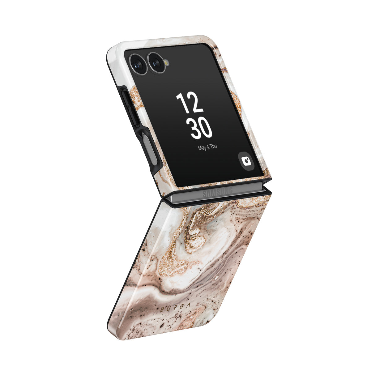 Our enchanting Cappuccino Samsung Galaxy Z Flip 7 phone case showcases a sophisticated and creamy marble pattern with golden swirls in it. The marble dream radiates elegance and luxury and is guaranteed to add some to your style.