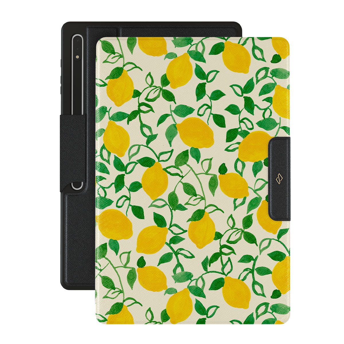 Lemon drops and island dreams. This Samsung Galaxy Tab S8 Ultra folio case design is a spontaneous trip to Capri, where the lemons are extra fresh, the sea is endless, and everything smells like vacation.