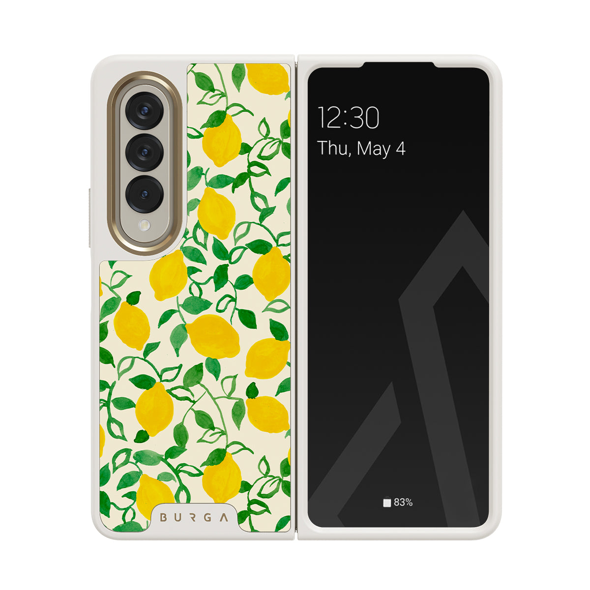 Lemon drops and island dreams. This Samsung Galaxy Z Fold 4 phone case design is a spontaneous trip to Capri, where the lemons are extra fresh, the sea is endless, and everything smells like vacation.