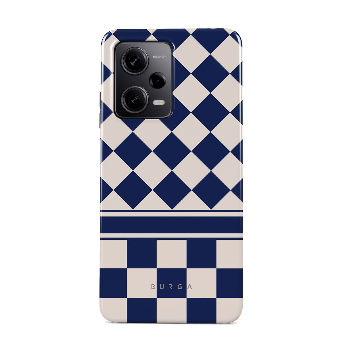 Embrace the essence of subtle luxury with our Check & Mate Xiaomi Redmi Note 12 Pro+ 5G phone case design. Blending eggshell and deep blue checkers, it evokes whispers of elegance. While diamonds grace the upper half, the lower half features a timeless chessboard pattern.