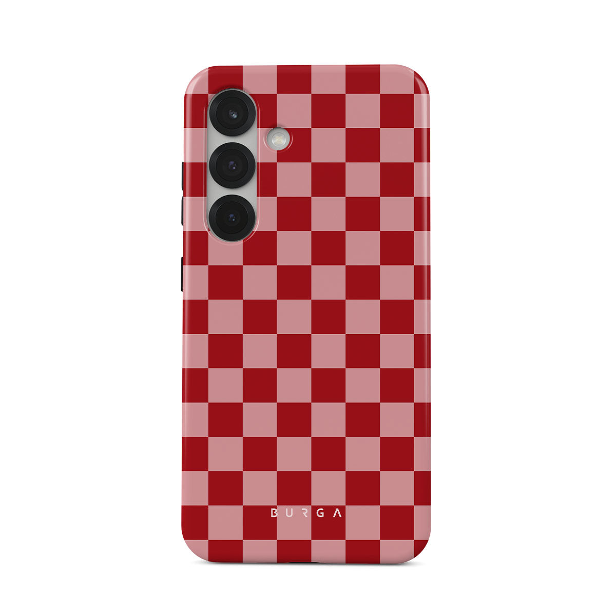 Bold, strong, and never on hold! Our Cheerleader - Samsung Galaxy S25 phone case design will turn your phone into the perfect accessory! The red checkered pattern adds that additional spark to your style while keeping your phone safe and sound in its perfect hard-shell case.