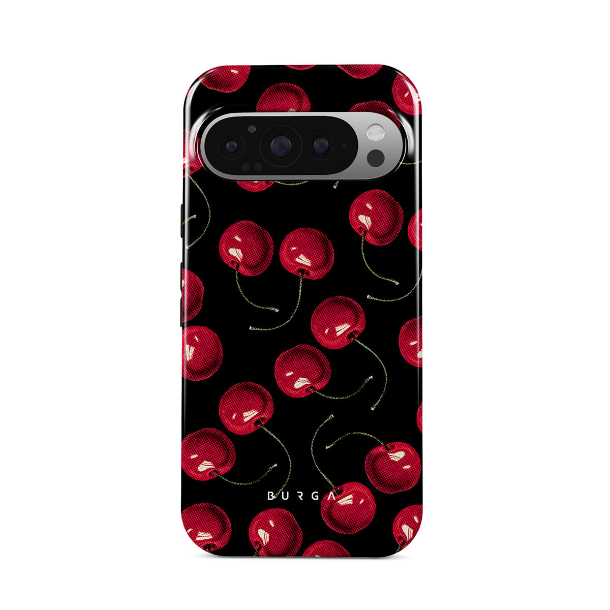 On a deep black background, rich red cherries stand out. Tempting and audacious, our Cherrybomb Google Pixel 9 Pro XL phone case design is perfect for anyone who likes to keep things simple yet striking.