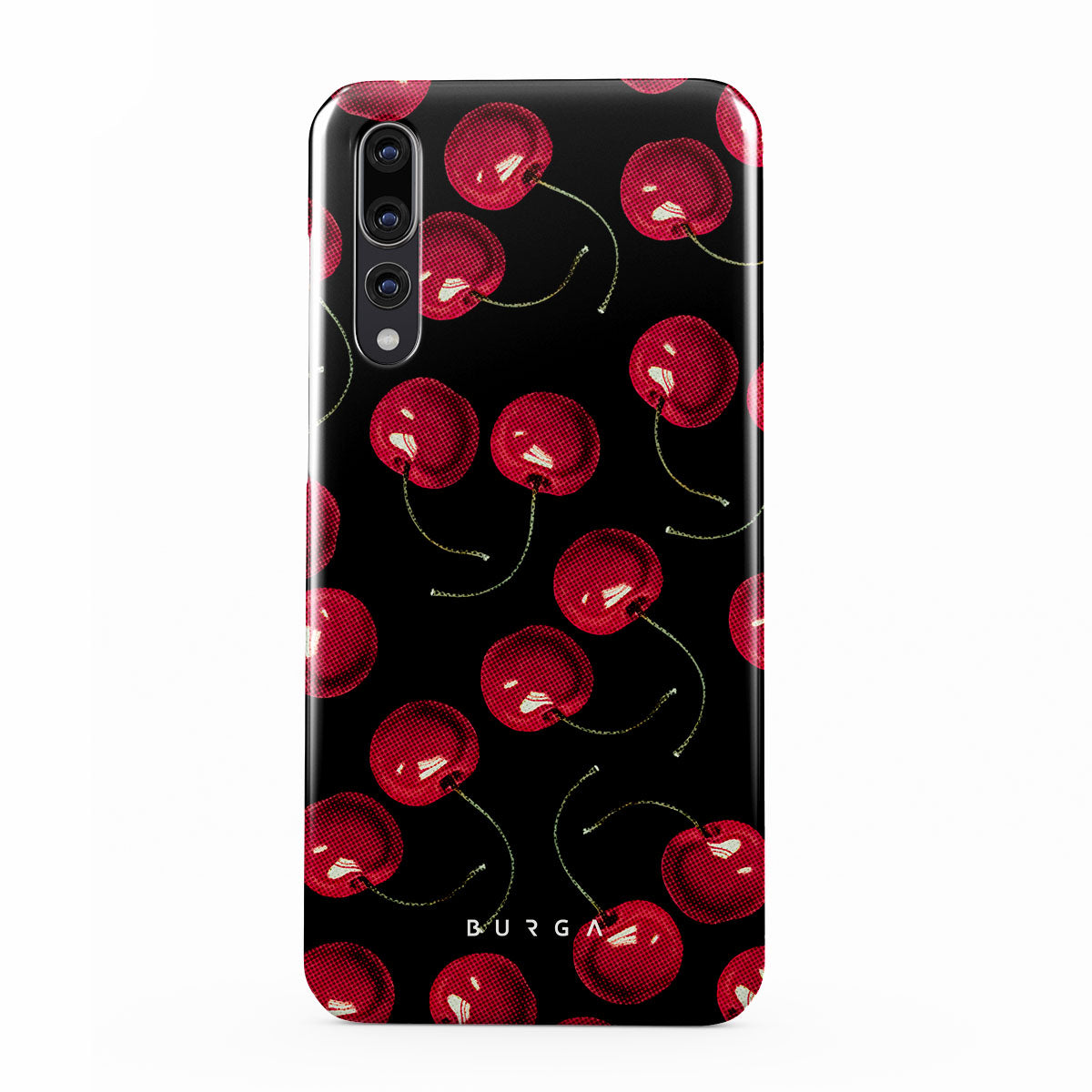 On a deep black background, rich red cherries stand out. Tempting and audacious, our Cherrybomb Huawei P20 phone case design is perfect for anyone who likes to keep things simple yet striking.