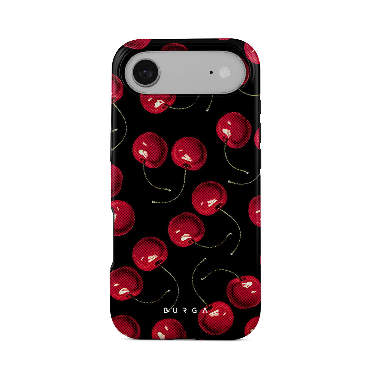 On a deep black background, rich red cherries stand out. Tempting and audacious, our Cherrybomb iPhone Air phone case design is perfect for anyone who likes to keep things simple yet striking.