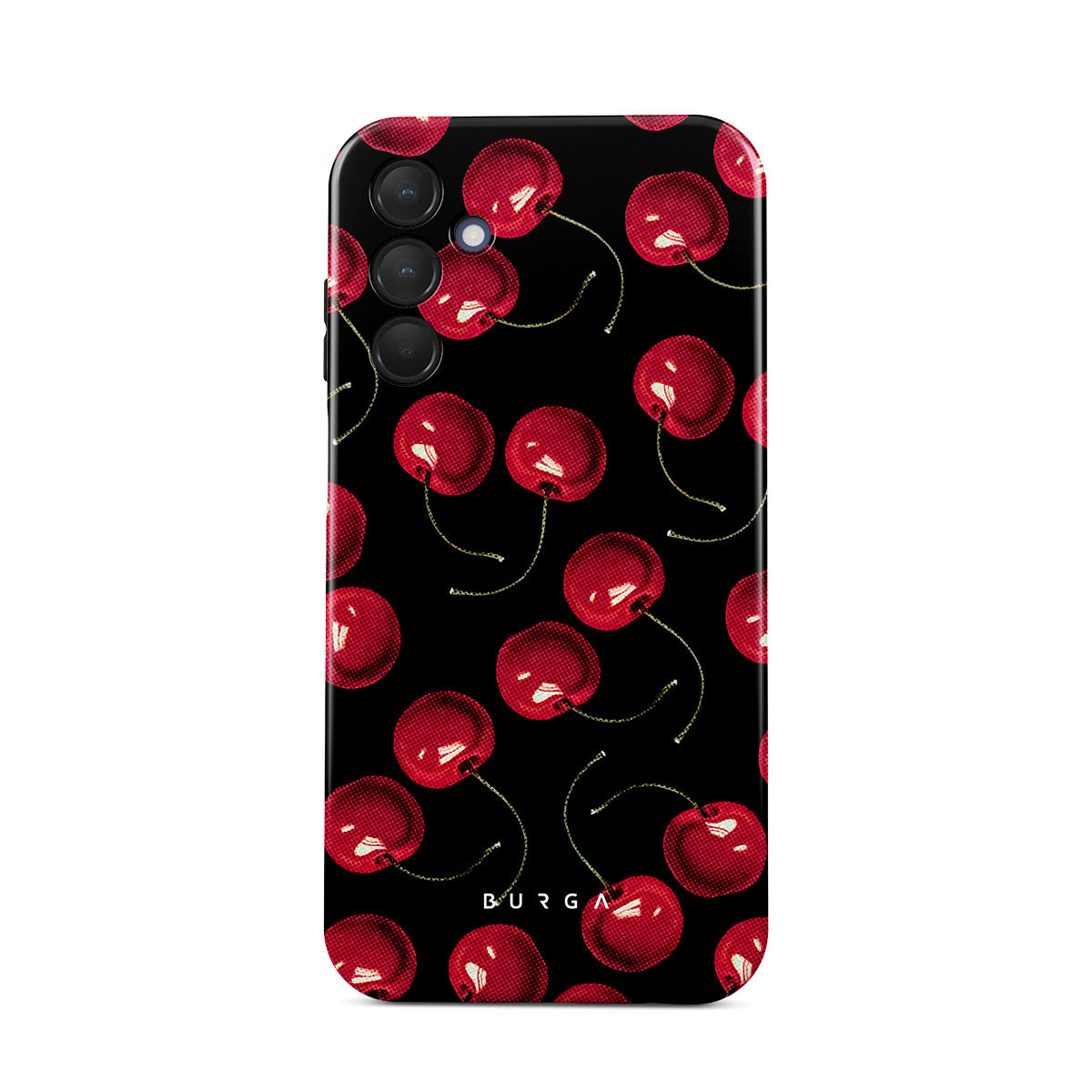 On a deep black background, rich red cherries stand out. Tempting and audacious, our Cherrybomb Samsung Galaxy A15 4G / 5G phone case design is perfect for anyone who likes to keep things simple yet striking.
