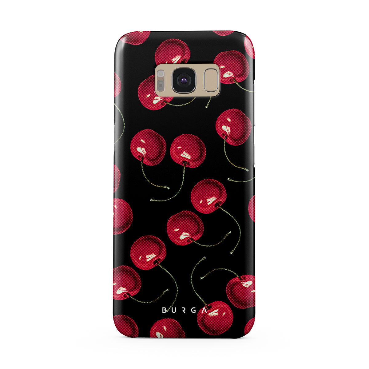 On a deep black background, rich red cherries stand out. Tempting and audacious, our Cherrybomb Samsung Galaxy S8 phone case design is perfect for anyone who likes to keep things simple yet striking.
