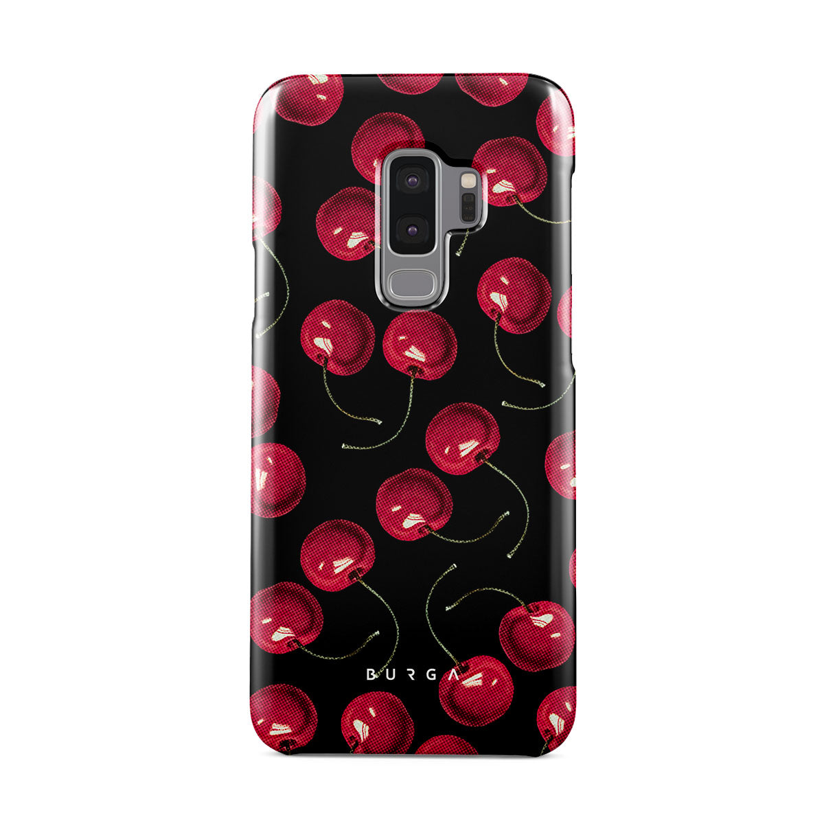 On a deep black background, rich red cherries stand out. Tempting and audacious, our Cherrybomb Samsung Galaxy S9 Plus phone case design is perfect for anyone who likes to keep things simple yet striking.
