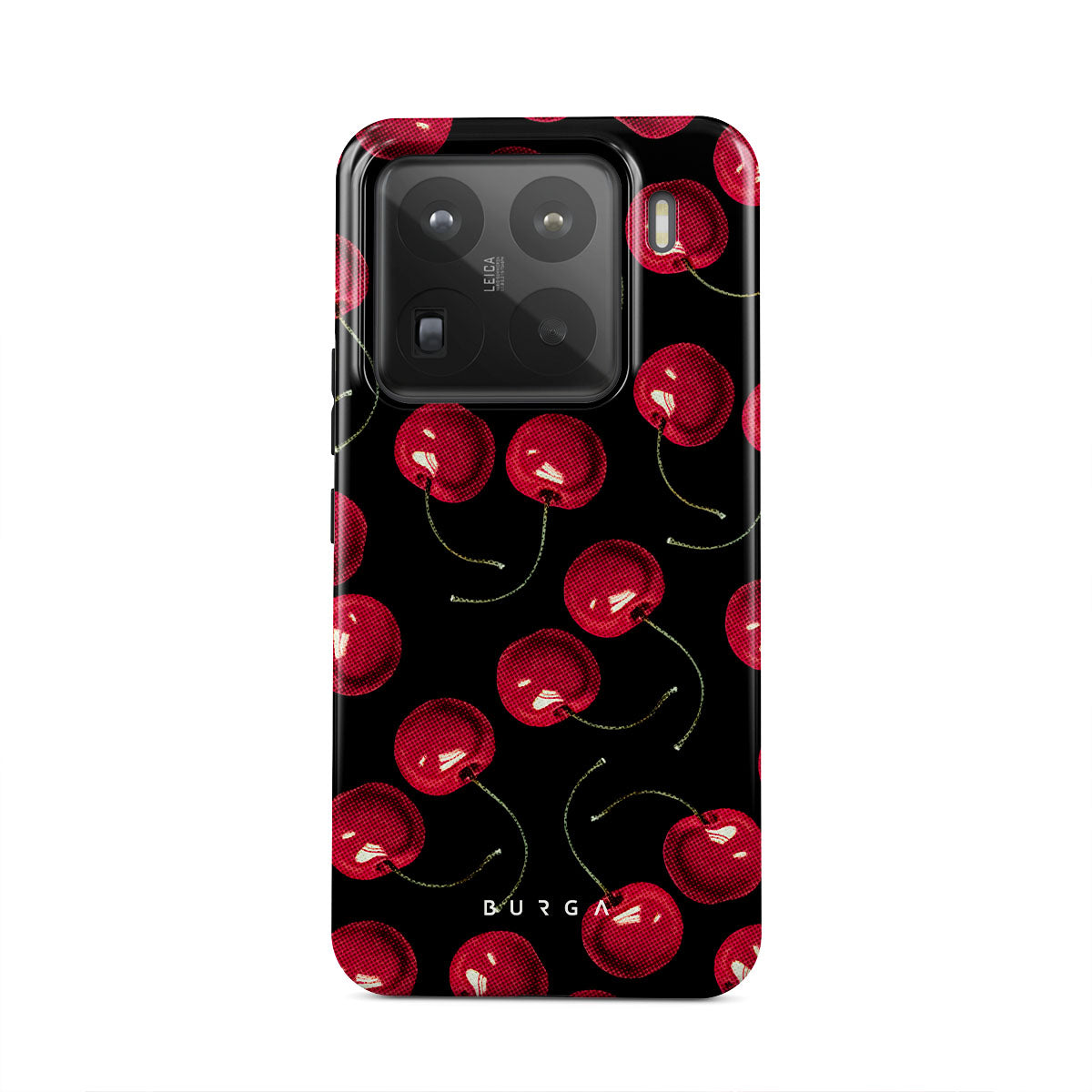 On a deep black background, rich red cherries stand out. Tempting and audacious, our Cherrybomb Xiaomi 15 Pro phone case design is perfect for anyone who likes to keep things simple yet striking.