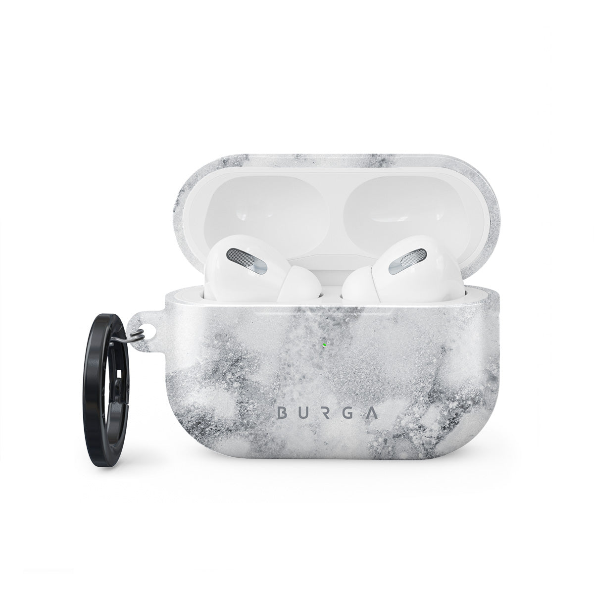 Our beautiful White Winter Apple Airpods Pro 2 case cover showcases a classy marble pattern where white meets black is a timeless piece needed in every collection of a true accessory enthusiast. Allow this case to add style to your Airpods Pro 2 case while also taking care of the much-needed protection. Our case fits perfectly snug around Apple Airpods Pro 2 . “Like a glove!” one might say. And it won’t disrupt the wireless charging capabilities of the newer model. There’s even an LED light indicator to prove it (don’t worry, wired charging still works, too). When fitted, the BURGA case will protect the delicate Apple Airpods Pro 2 case beneath it from scratches, bumps, and drops while remaining scratch-free itself. Our signature design pattern prints are High Quality, and will never peel or fade away- thanks to our unique printing technology. And finally, a handy carabiner is there to make your life easier and more convenient: just snap it around your keys or belt loop and tackle the day head-on. Your music is right there by your side when you need it.