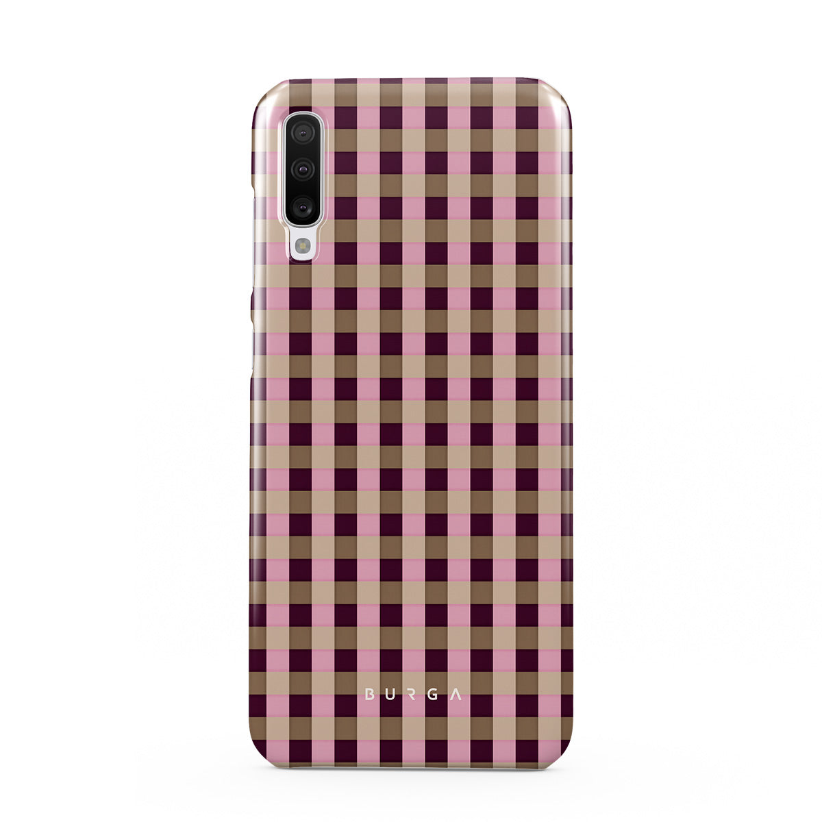 This design features: pink and burgundy plaid pattern, modern checkered style.