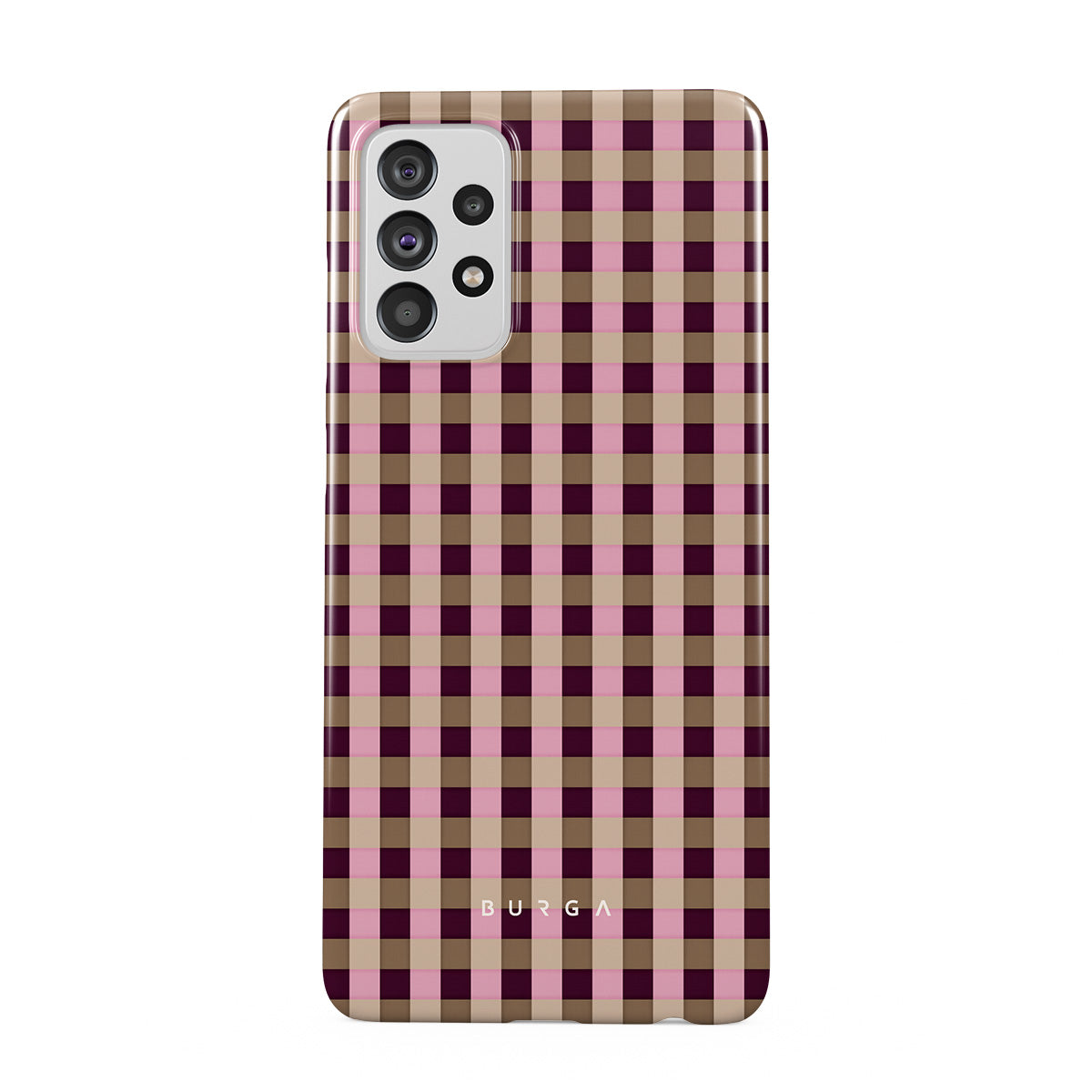 This design features: pink and burgundy plaid pattern, modern checkered style.