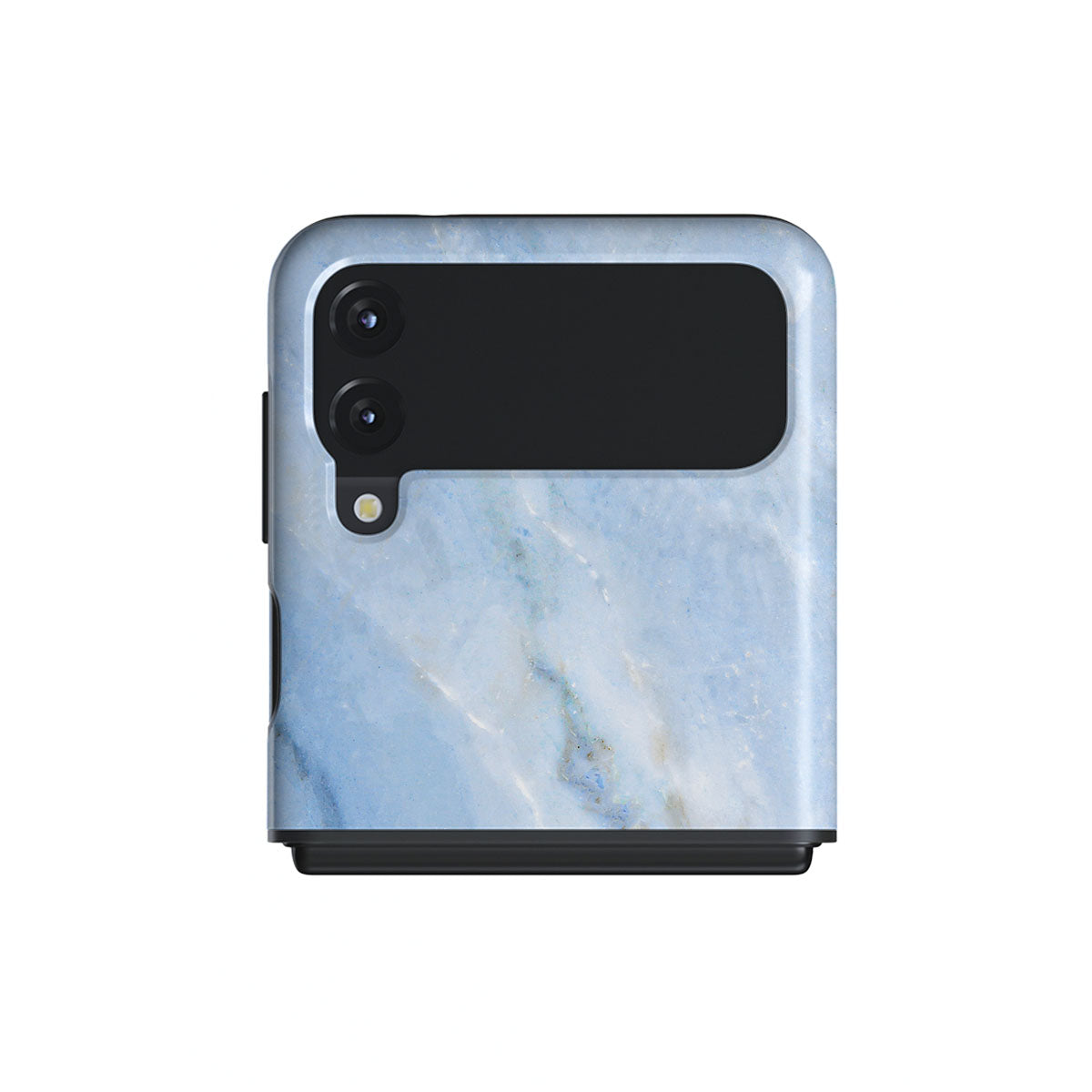 Bright, blue, and beautiful. The sky surrounds us all. Look up, remember and cherish the days of laying on the grass and counting the clouds. Take this feeling of vivid imagination with a protective Samsung Galaxy Z Flip 3 phone case designed and inspired by the shapeshifting clouds.
