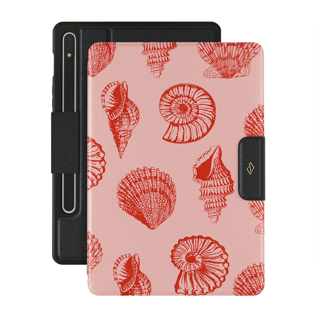 With a palette of soft pinks and an assortment of shells adorning the piece, our Coastal Treasure [product] Samsung Galaxy Tab S8/S7 folio case design invokes the calming feel of a day spent by the shore. Like the countless hidden gems discovered along the coast, each shell is unique and distinct, adding to the charm of the design.
