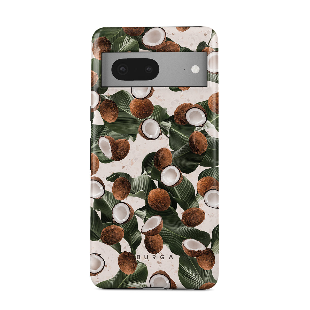 Coconut Crush Google Pixel 7 phone case showcases a soft creme color design with a playful addition of coconuts on top. The unexpected design duo will add a touch of tropical playfulness to your style while offering heavy-duty protection for your cell phone.