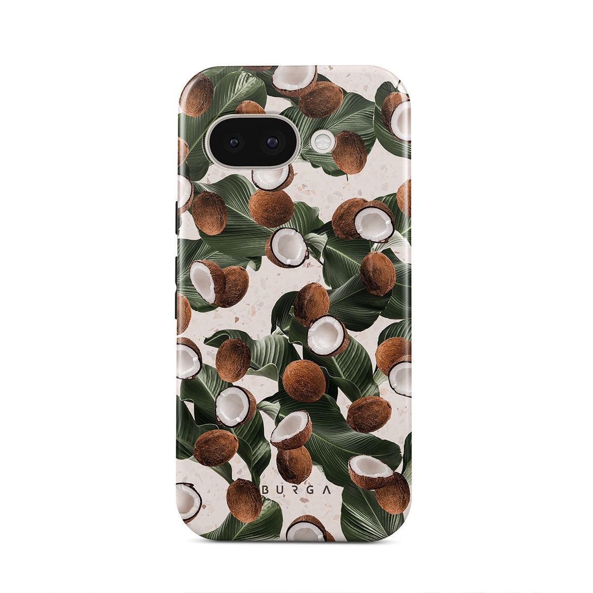 Coconut Crush Google Pixel 9a phone case showcases a soft creme color design with a playful addition of coconuts on top. The unexpected design duo will add a touch of tropical playfulness to your style while offering heavy-duty protection for your cell phone.
