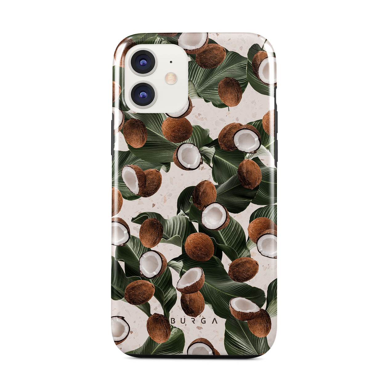 Coconut Crush iPhone 11 phone case showcases a soft creme color design with a playful addition of coconuts on top. The unexpected design duo will add a touch of tropical playfulness to your style while offering heavy-duty protection for your cell phone.