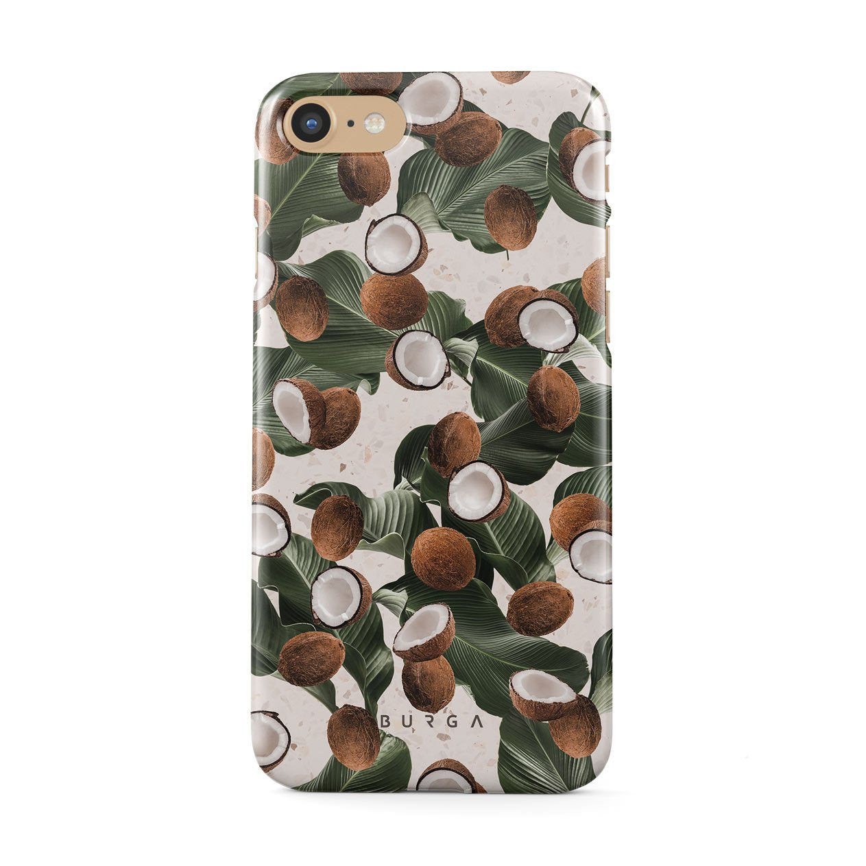 Coconut Crush iPhone SE (2020) phone case showcases a soft creme color design with a playful addition of coconuts on top. The unexpected design duo will add a touch of tropical playfulness to your style while offering heavy-duty protection for your cell phone.