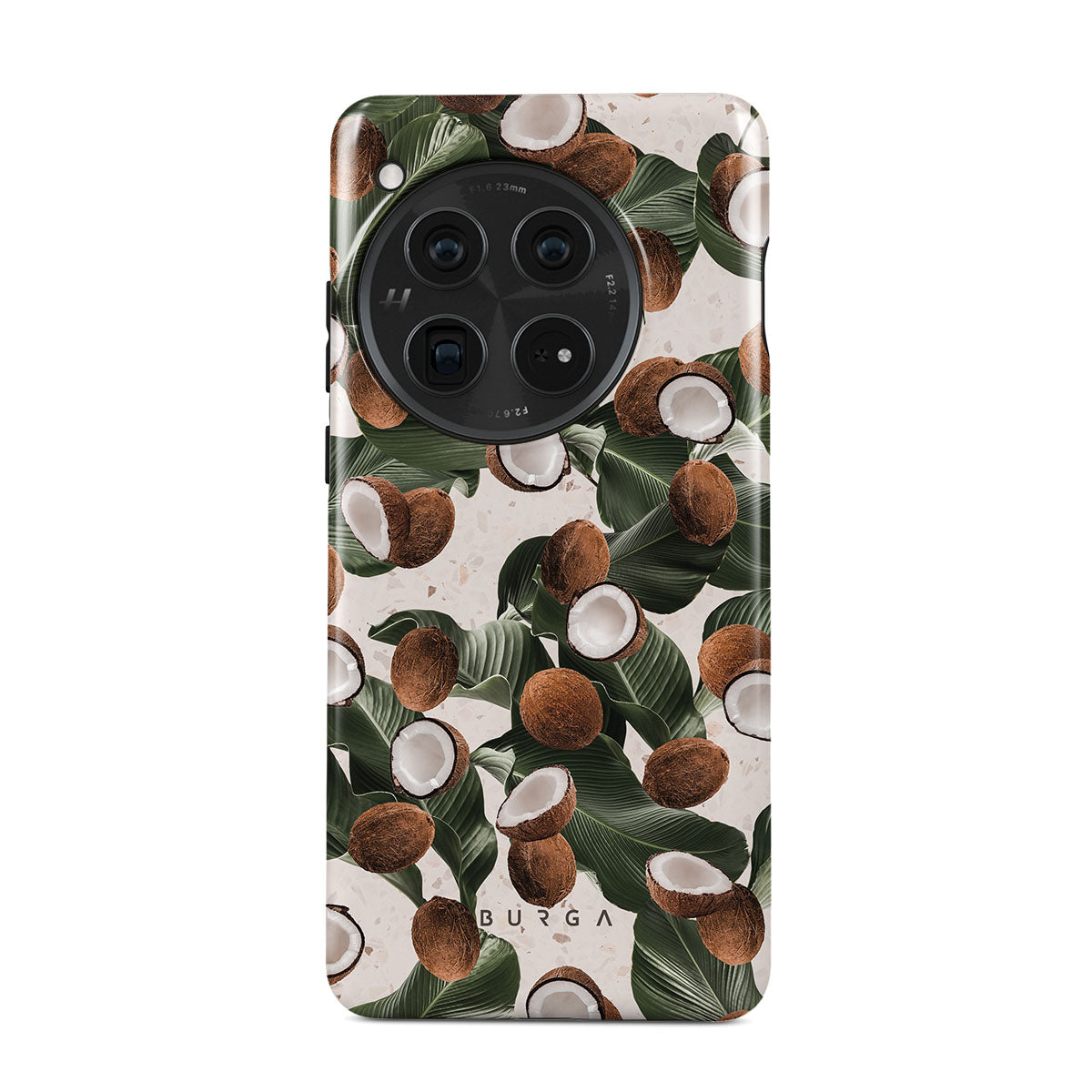 Coconut Crush OnePlus 12 phone case showcases a soft creme color design with a playful addition of coconuts on top. The unexpected design duo will add a touch of tropical playfulness to your style while offering heavy-duty protection for your cell phone.