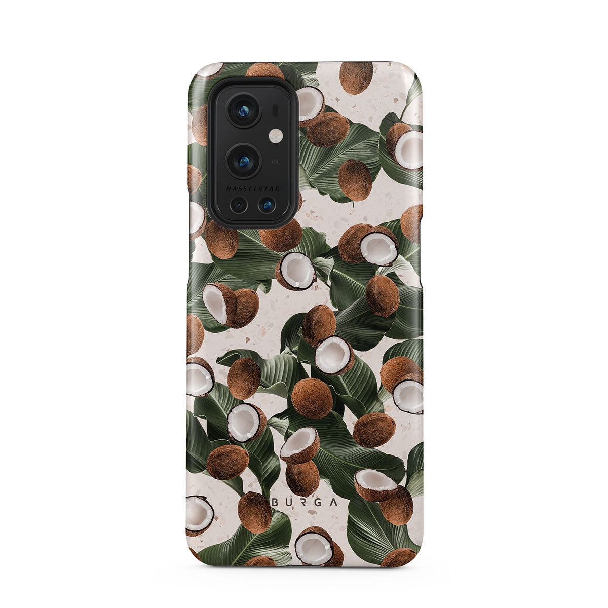 Coconut Crush OnePlus 9 Pro phone case showcases a soft creme color design with a playful addition of coconuts on top. The unexpected design duo will add a touch of tropical playfulness to your style while offering heavy-duty protection for your cell phone.