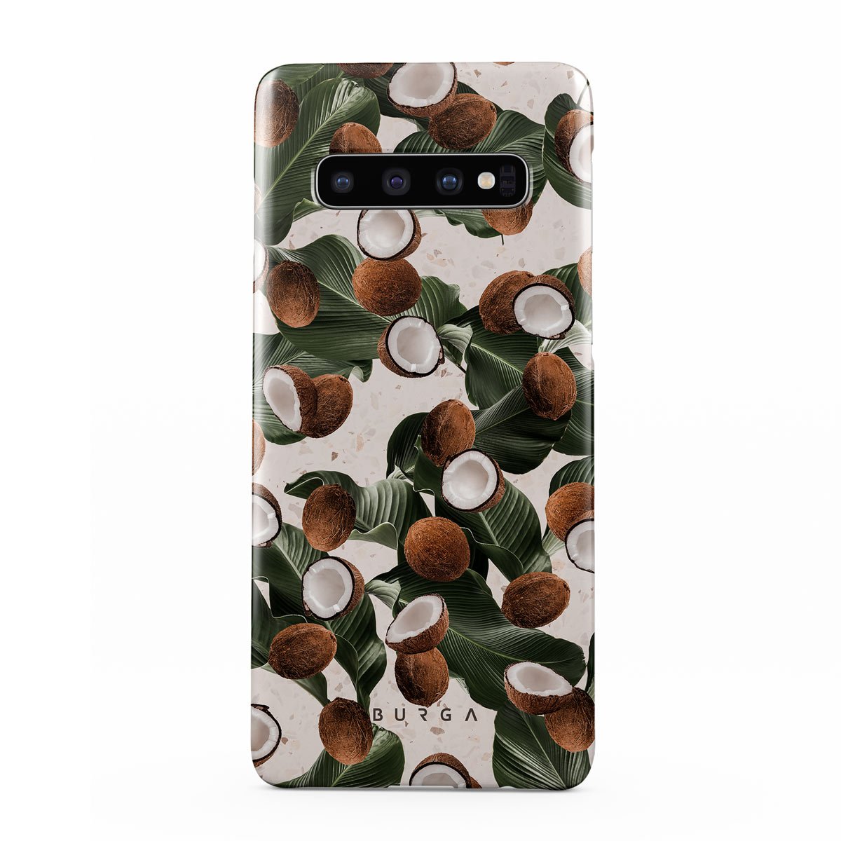 Coconut Crush Samsung Galaxy S10 Plus phone case showcases a soft creme color design with a playful addition of coconuts on top. The unexpected design duo will add a touch of tropical playfulness to your style while offering heavy-duty protection for your cell phone.
