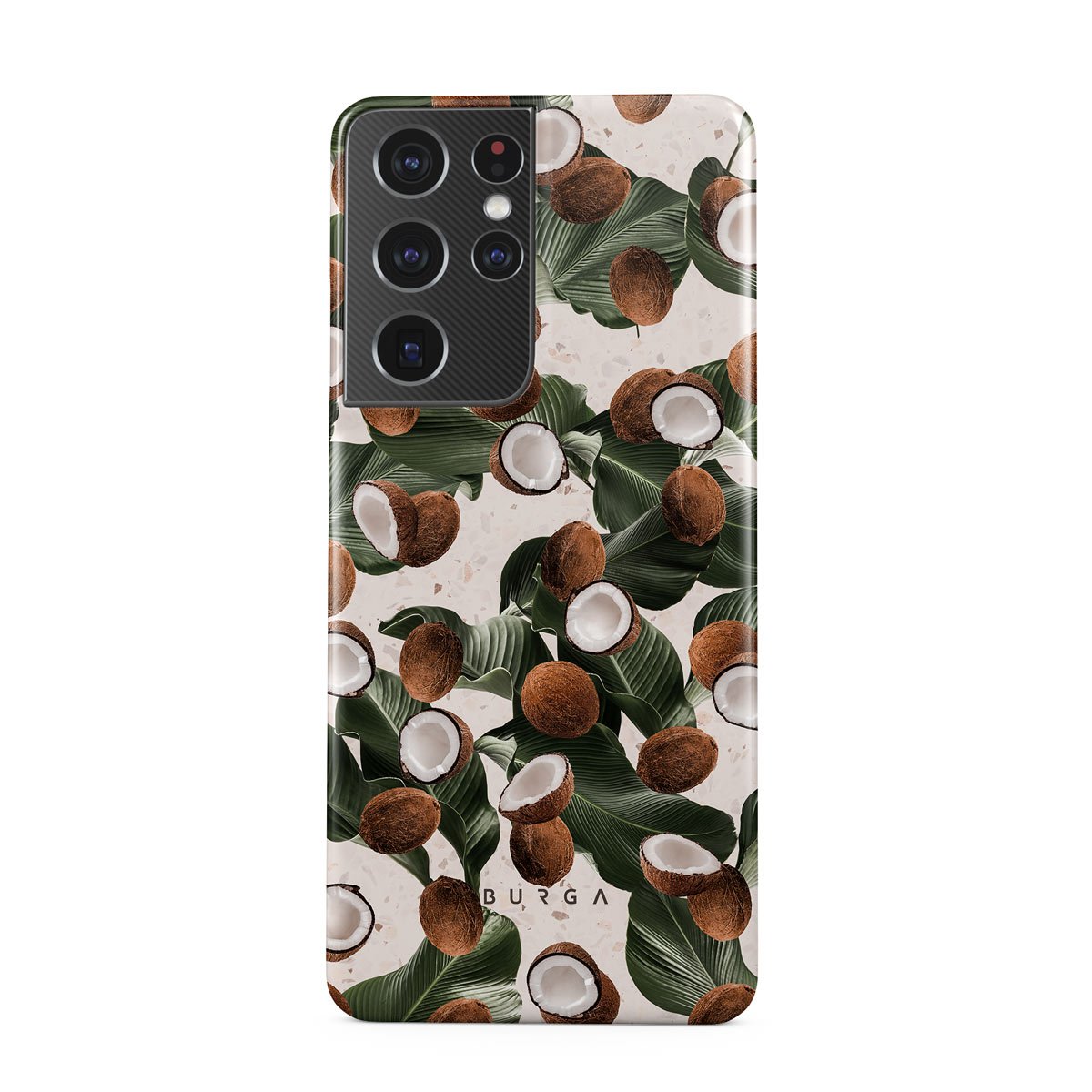 Coconut Crush Samsung Galaxy S21 Ultra phone case showcases a soft creme color design with a playful addition of coconuts on top. The unexpected design duo will add a touch of tropical playfulness to your style while offering heavy-duty protection for your cell phone.