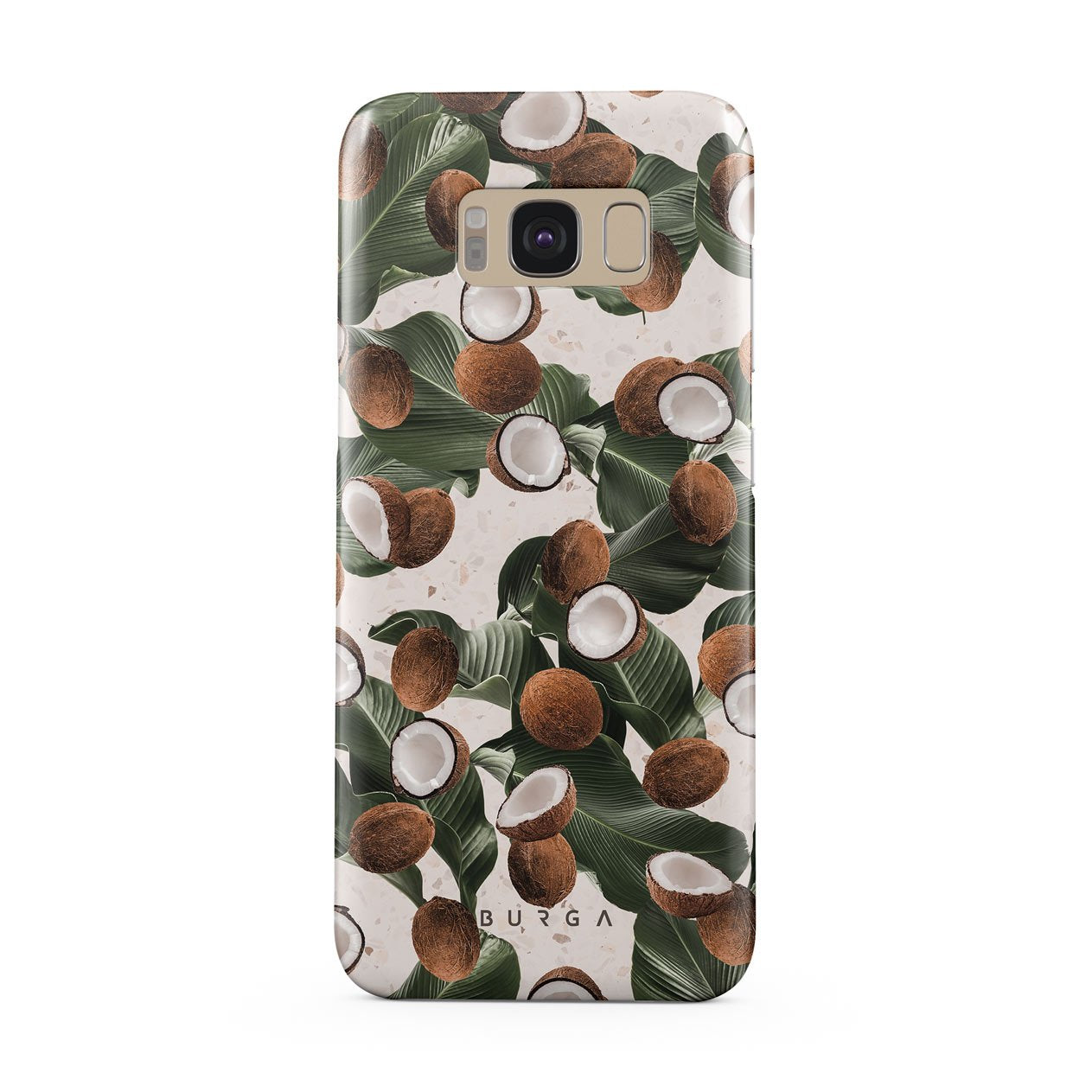 Coconut Crush Samsung Galaxy S8 phone case showcases a soft creme color design with a playful addition of coconuts on top. The unexpected design duo will add a touch of tropical playfulness to your style while offering heavy-duty protection for your cell phone.