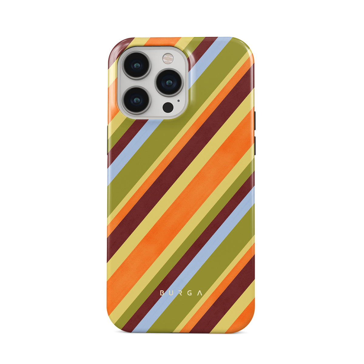 The kind of stripes you’d find on a beach towel left out since noon. Citrus meets spice meets “where’s my other sandal?” The Copacabana iPhone 14 Pro phone case design: it’s carefree with a side of extra.
