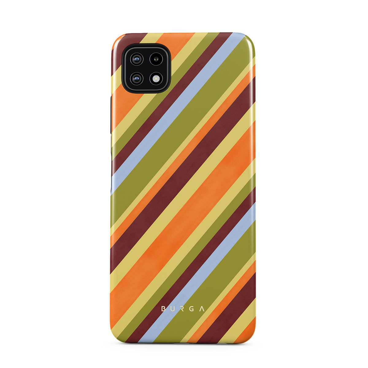 The kind of stripes you’d find on a beach towel left out since noon. Citrus meets spice meets “where’s my other sandal?” The Copacabana Samsung Galaxy A22 5G phone case design: it’s carefree with a side of extra.
