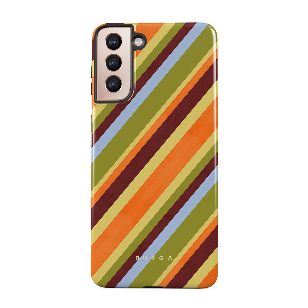 The kind of stripes you’d find on a beach towel left out since noon. Citrus meets spice meets “where’s my other sandal?” The Copacabana Samsung Galaxy S21 Plus phone case design: it’s carefree with a side of extra.