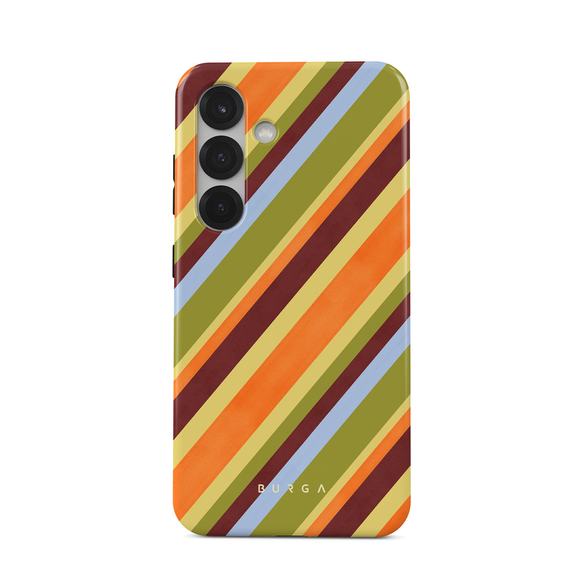 The kind of stripes you’d find on a beach towel left out since noon. Citrus meets spice meets “where’s my other sandal?” The Copacabana Samsung Galaxy S25 phone case design: it’s carefree with a side of extra.