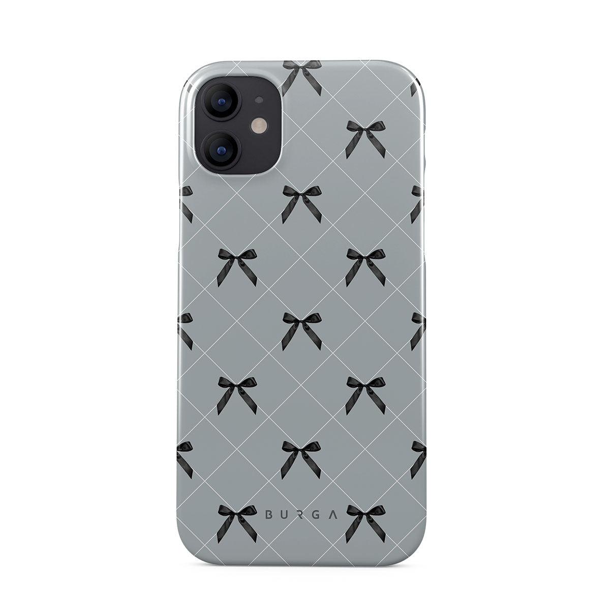 A subtle hint to a world of dance and soft melodies. Crisscrossing bows over a muted gray tone capture the flirtatious essence of the coquette-core aesthetic. Playful and sweet, our Coquette iPhone 12 Mini phone case design is perfect for those who find beauty in the details.