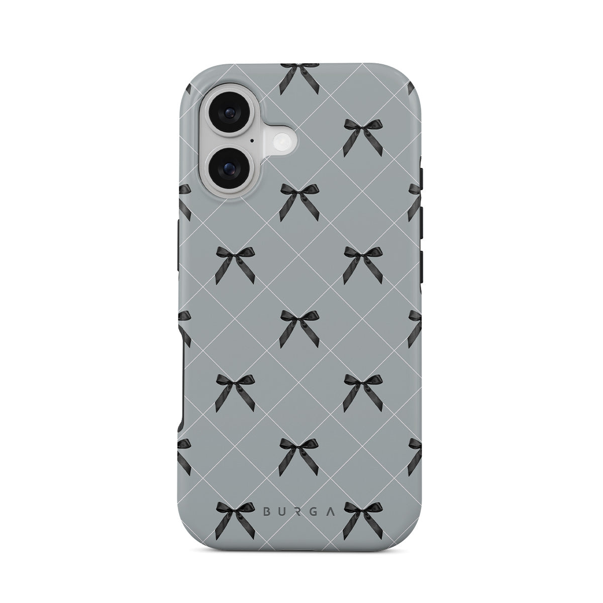 A subtle hint to a world of dance and soft melodies. Crisscrossing bows over a muted gray tone capture the flirtatious essence of the coquette-core aesthetic. Playful and sweet, our Coquette iPhone 17 phone case design is perfect for those who find beauty in the details.