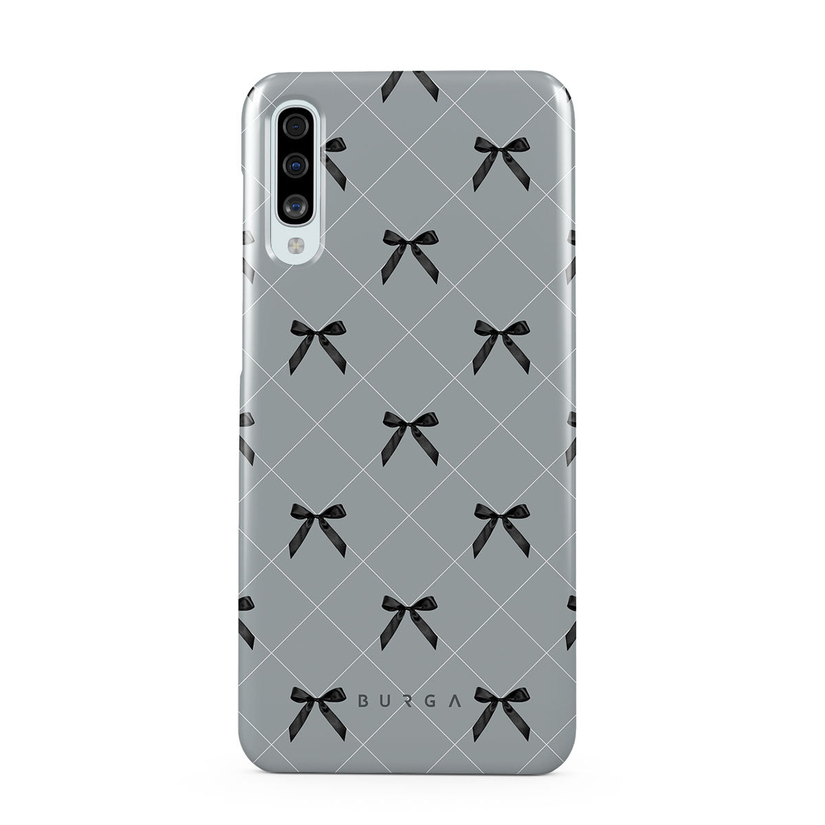 A subtle hint to a world of dance and soft melodies. Crisscrossing bows over a muted gray tone capture the flirtatious essence of the coquette-core aesthetic. Playful and sweet, our Coquette Samsung Galaxy A50 phone case design is perfect for those who find beauty in the details.