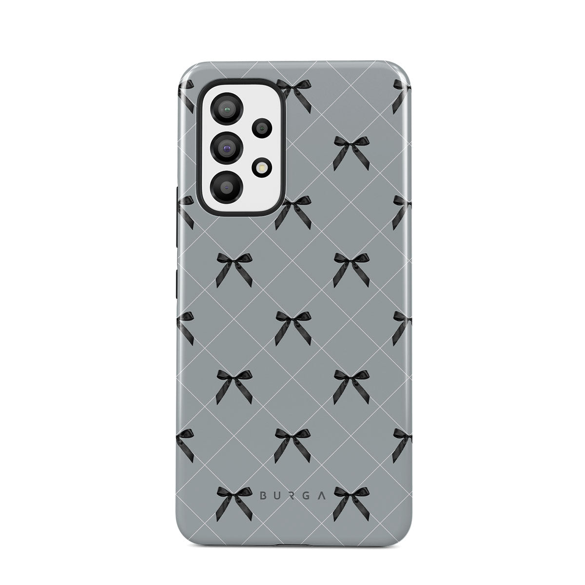A subtle hint to a world of dance and soft melodies. Crisscrossing bows over a muted gray tone capture the flirtatious essence of the coquette-core aesthetic. Playful and sweet, our Coquette Samsung Galaxy A73 phone case design is perfect for those who find beauty in the details.